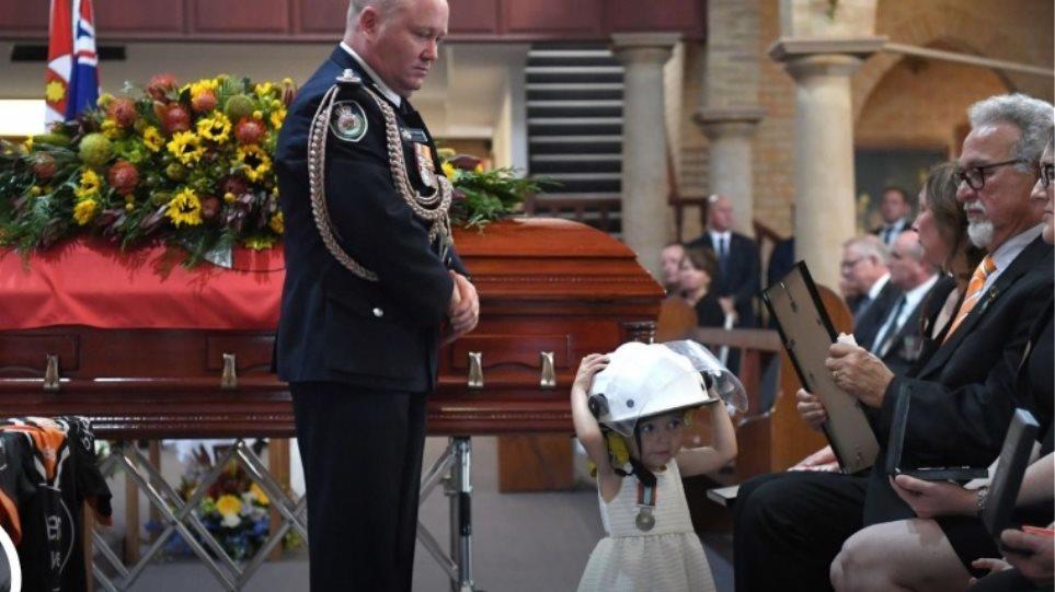 Ορφανό έμεινε ένα κοριτσάκι 19 μηνών, που αποχαιρέτησε με τον δικό του τρόπο τον πατέρα του, εθελοντή πυροσβέστη, Αυστραλό Άντριου Ο' Ντιούερ.