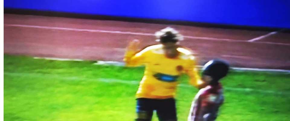 Την πρώτη την είχε δεχθεί στο 28', σε φάση που πήγε ο ίδιος να κερδίσει πέναλτι, όμως ο διαιτητής του παιχνιδιού τον τιμώρησε για θέατρο.