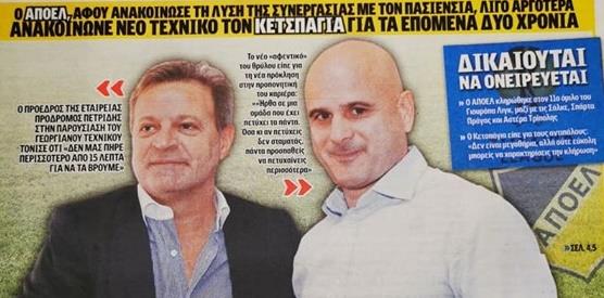 Στα χαρτονομίσματα, υπήρχε φωτογραφία του Γεωργιανού κόουτς με τον πρόεδρο του ΑΠΟΕΛ, Πρόδρομο Πετρίδη. Αξίζει να σημειωθεί πως ο 51χρονος, τεχνικός, δεν εισήλθε στον αγωνιστικό χώρο την ώρα της προθέρμανσης και έκανε την είσοδο του για πρώτη φορά, όταν μπήκαν οι ποδοσφαιριστές για να αρχίσει ο αγώνας.