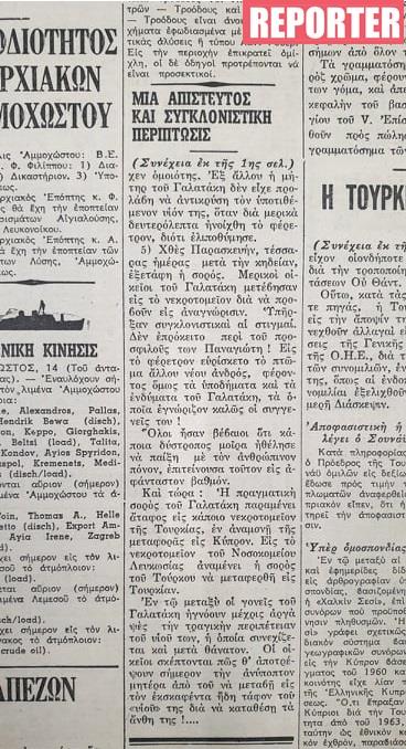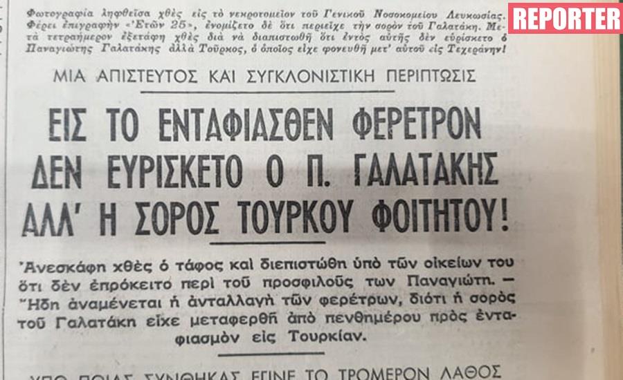 Αυτοί ήταν οι τίτλοι μερικών πρωτοσέλιδων εφημερίδων, την 15η Ιανουαρίου 1972, τα οποία αναφέρονταν σε ένα μακάβριο λάθος και το μπέρδεμα δύο σορών, γράφοντας πως «η περίπτωσις είναι συγκλονιστική και μοναδική τουλάχιστον δια την Κύπρον».