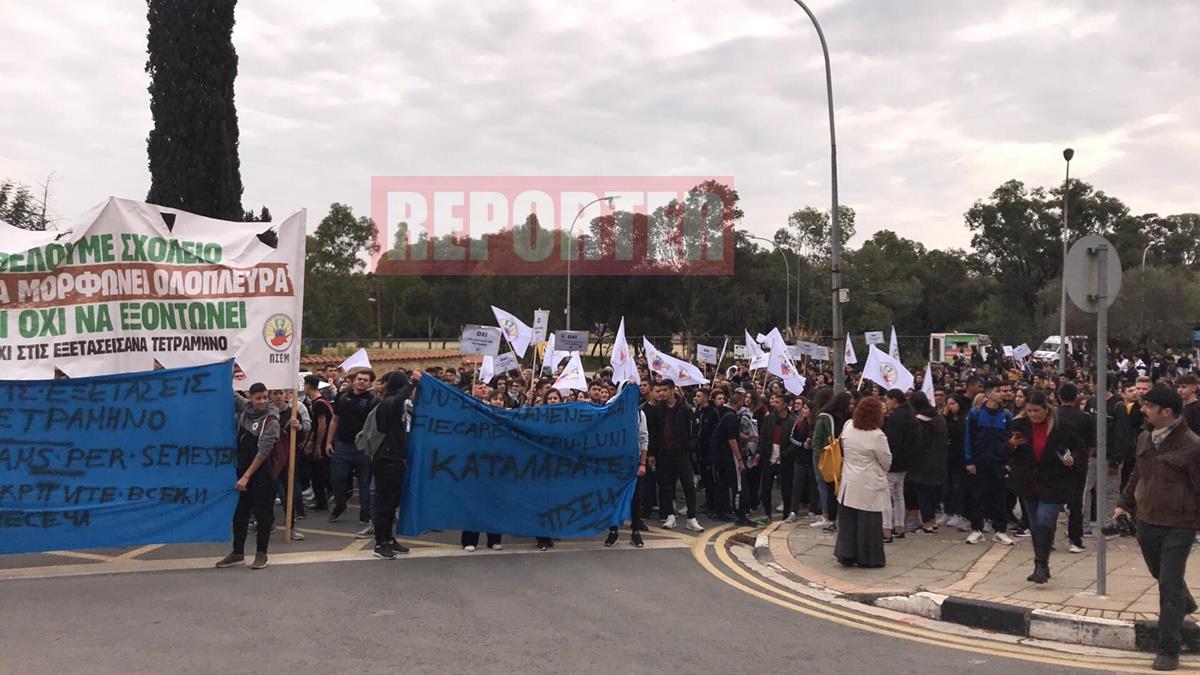 Προς το Προεδρικό πορεύονται οι μαθητές, οι οποίοι διαμαρτύρονται για τις εξετάσεις τετραμήνων. Η εκδήλωσή τους ξεκίνησε με πορεία.