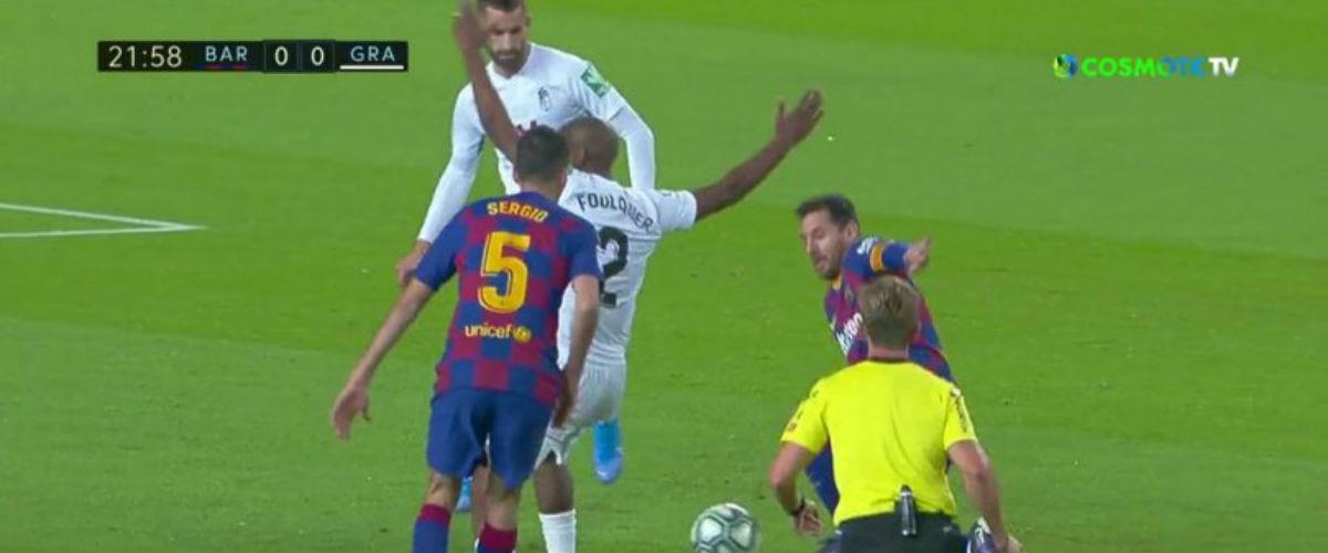 Δεν κλέβεις την μπάλα από τον Λιονέλ Μέσι ούτε για αστείο. Νόμος. Ακόμα κι ο διαιτητής του Μπαρτσελόνα - Γρανάδα, σε φάουλ που έγινε εις βάρος του Αργεντίνου, άφησε πλεονέκτημα, γιατί ήξερε ότι εκείνος δεν πτοείται από μια τρικλοποδιά.