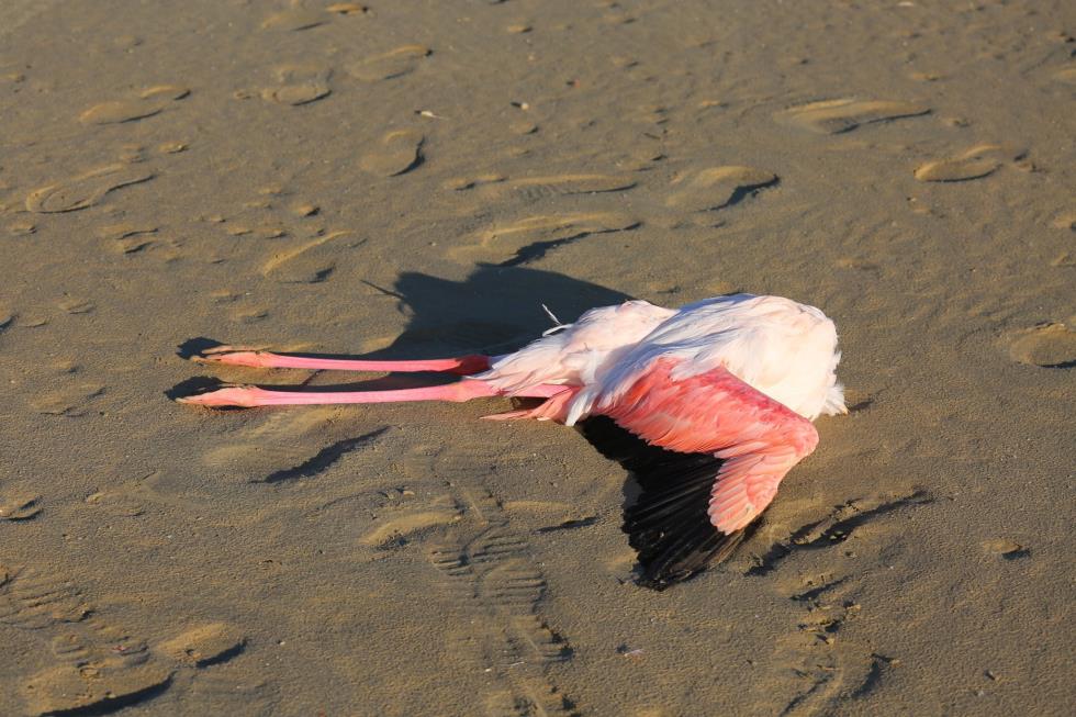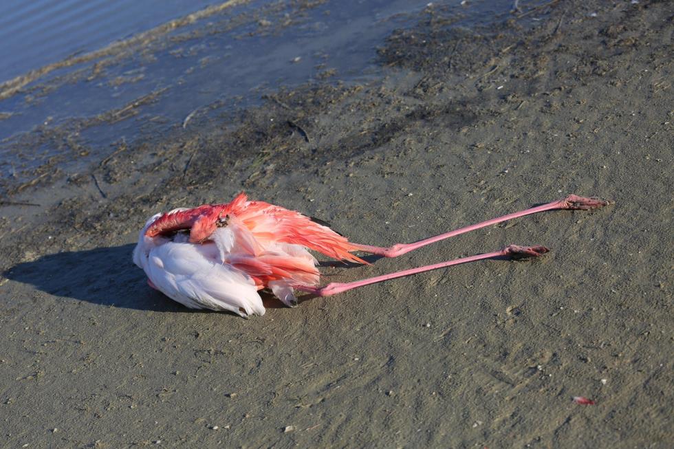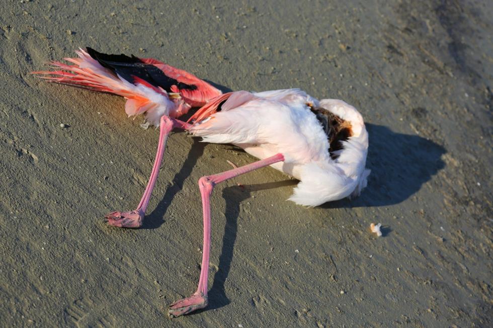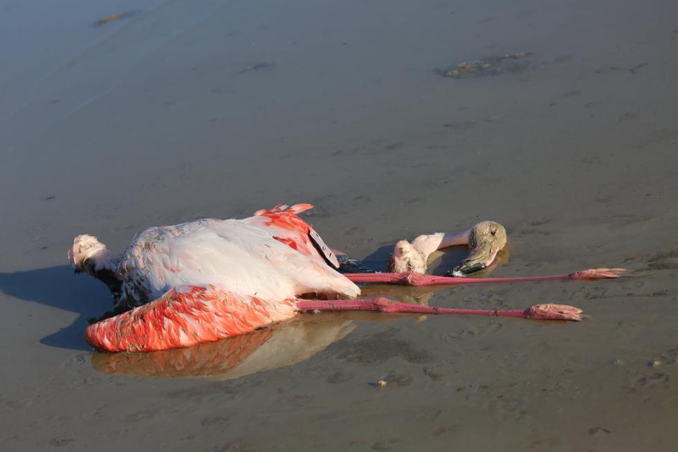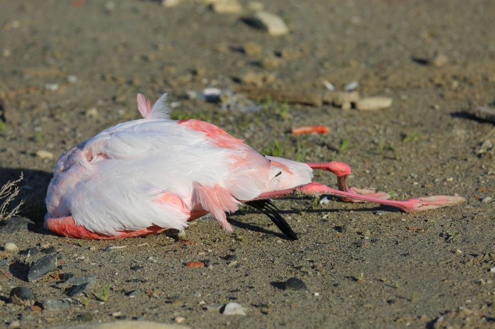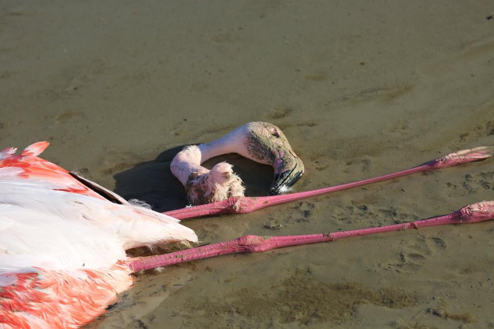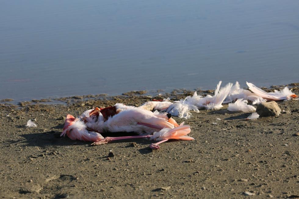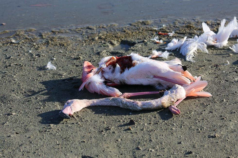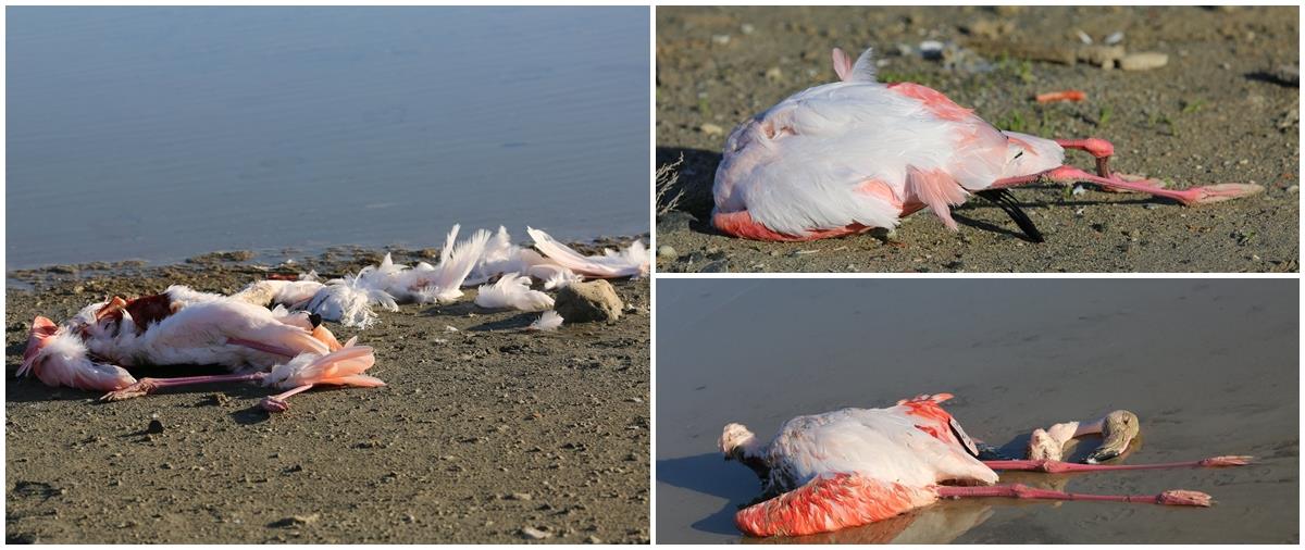 Όπως θα δείτε και στις φωτογραφίες που ακολουθούν, τα φλαμίνγκο κείτονται νεκρά στην περιοχή χωρίς μέχρι στιγμής να έχουν εξακριβωθεί τα αίτια.