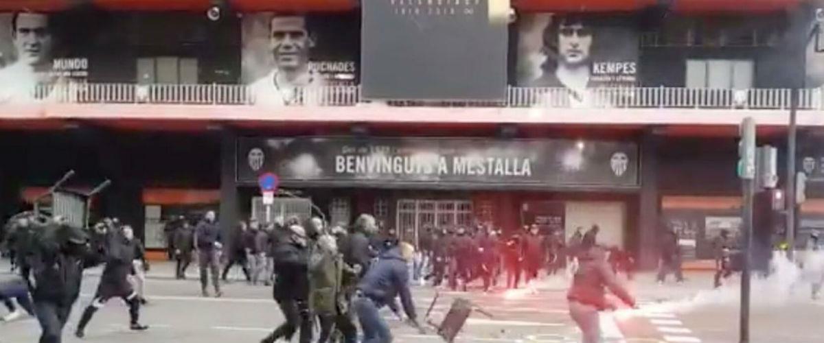 Βίαια επεισόδια εκτυλίχθηκαν λίγες μόνο ώρες πριν την έναρξη του αγώνα Βαλένθια-Μπαρτσελόνα στους γύρω δρόμους του «Μεστάγια», από χούλιγκαν και των δύο ομάδων που αιφνιδίασαν την αστυνομία. Μέσα σε λίγα μόνο λεπτά στήθηκε ένα πολεμικό σκηνικό από ultras της Βαλένθια και της Μπάρτσα, που έδωσαν μάχες σώμα με σώμα, κρατώντας σίδερα, λοστούς, φωτοβολίδες, ακόμη και καρέκλες και τραπέζια από τα γύρω μπαρ, που ήταν ανοιχτά.