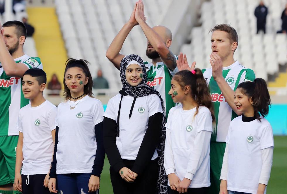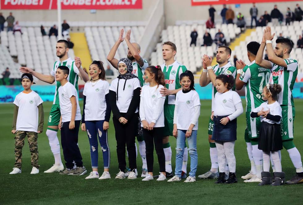 Όπως ανακοίνωσε η Ομόνοια, τα παιδιά είναι φιλοξενούμενοί της και, μετά τη συνοδεία των ποδοσφαιριστών, πήραν θέσεις στα θεωρεία για να παρακολουθήσουν τον αγώνα.