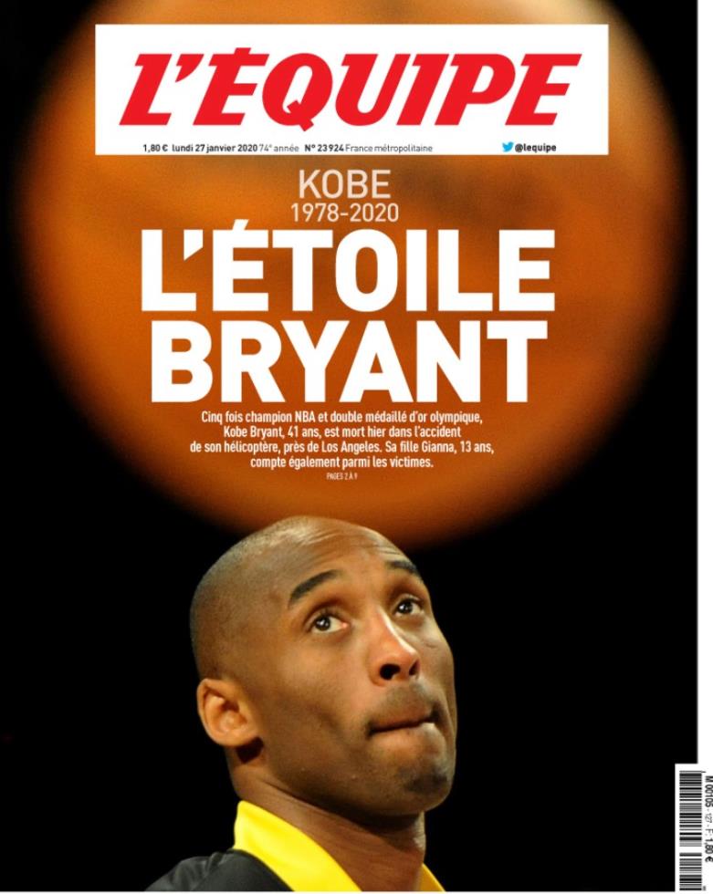 Όπως έγινε με τεράστιο αριθμό ανθρώπων του αθλητισμού, έτσι και ο διεθνής Τύπος αφιέρωσε ολόκληρα πρωτοσέλιδα το πρωί της Δευτέρας, στη μνήμη του Κόμπι Μπράιαντ, της κληρονομιάς που άφησε πίσω του στο μπάσκετ αλλά και του μεγαλείου που τον χαρακτήριζε στην καριέρα του...