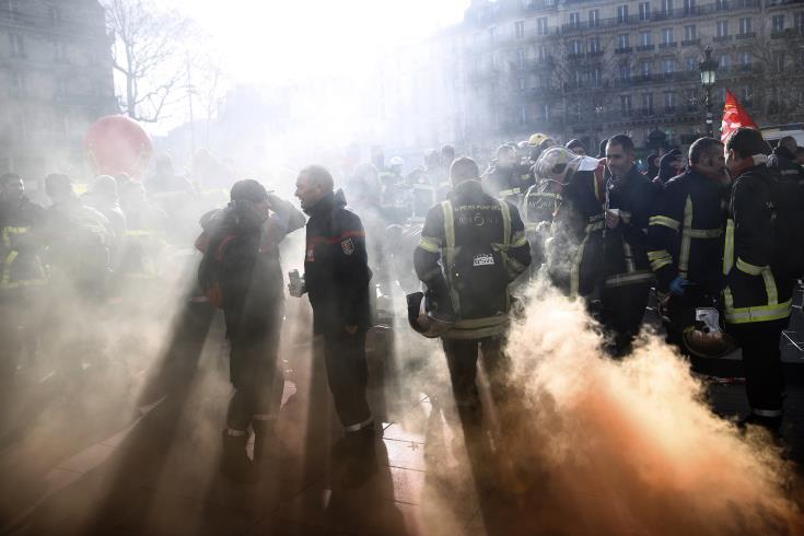 Συγκρούσεις μεταξύ αστυνομικών και πυροσβεστών σε διαδήλωση στο Παρίσι