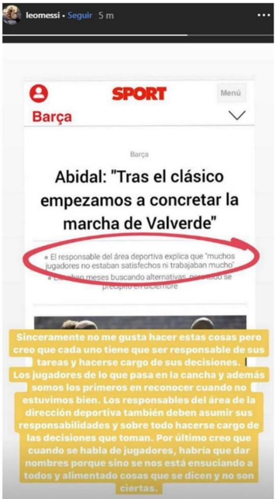 Θα ήθελα να κρατήσεις τη δεύτερη και την τρίτη σημείωση. Τουλάχιστον σε αυτές εστίασε ο Λιονέλ Μέσι, o oποίος τοποθετήθηκε με Instagram story, που προφανώς 'φωτογράφισαν' δημοσιογράφοι και το χρησιμοποίησαν, ώστε να αποδείξουν πως κάτι δεν πάει καθόλου καλά στην ομάδα.