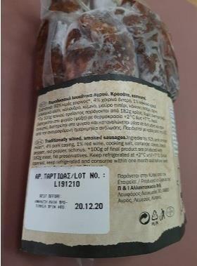 Ονομασία τροφίμου επί συσκευασίας: Παραδοσιακά λουκάνικα Αγρού – κρασάτα, καπνιστά