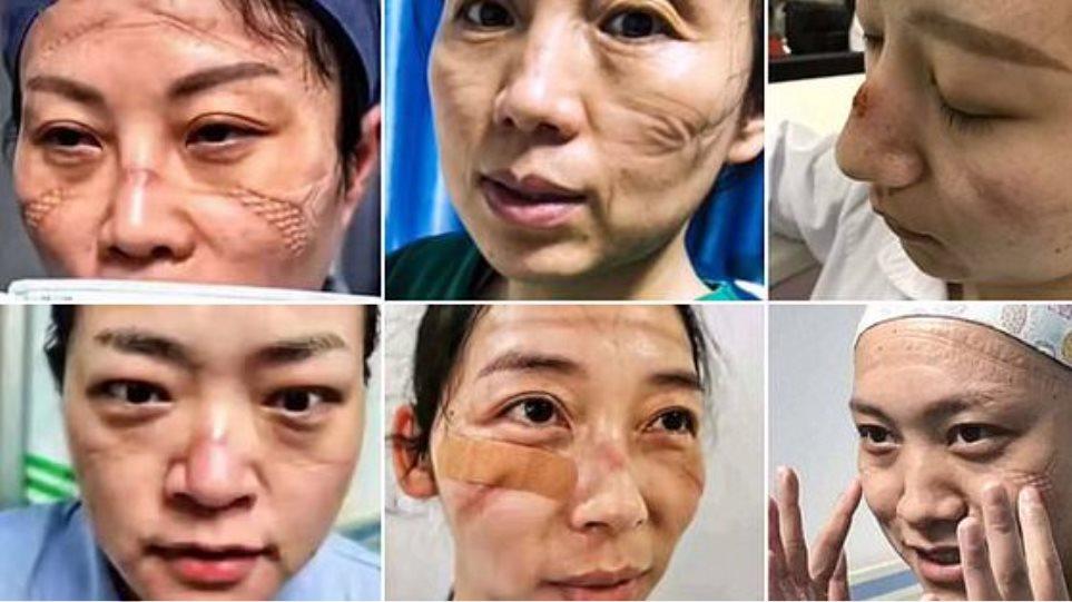 Τα παραμορφωμένα πρόσωπα γιατρών και νοσηλευτών δείχνουν εξάντληση και απελπισία στην Κίνα