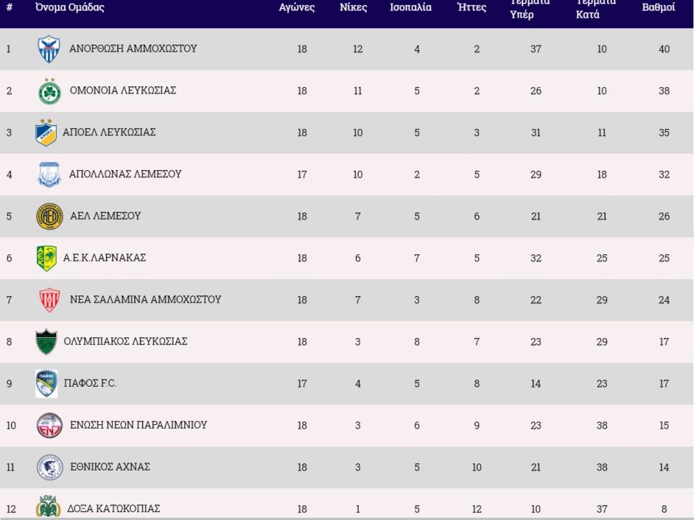 Η πρωτοπόρος Ανόρθωση αγωνίζεται εκτός έδρας με τον Ολυμπιακό στον πρώτο χρονικά αγώνα της αγωνιστικής (Σάββατο, 17:00) ενώ Σάββατο θα γίνει και το ντέρμπι μεταξύ της ΑΕΚ και του ΑΠΟΕΛ.