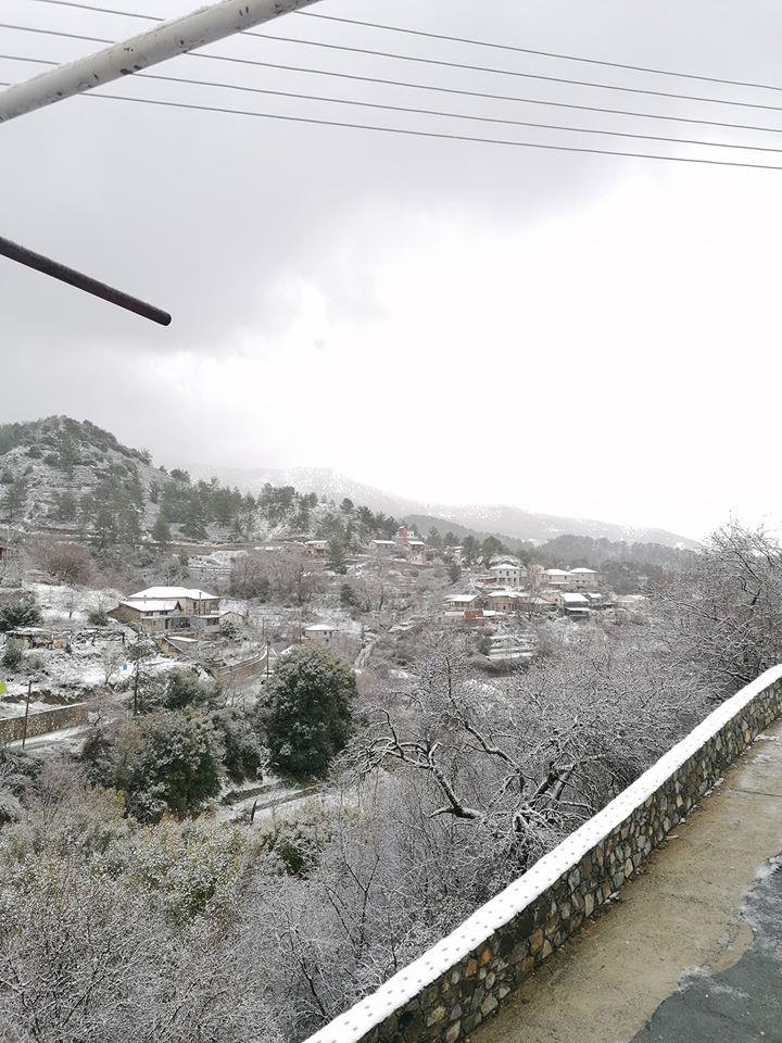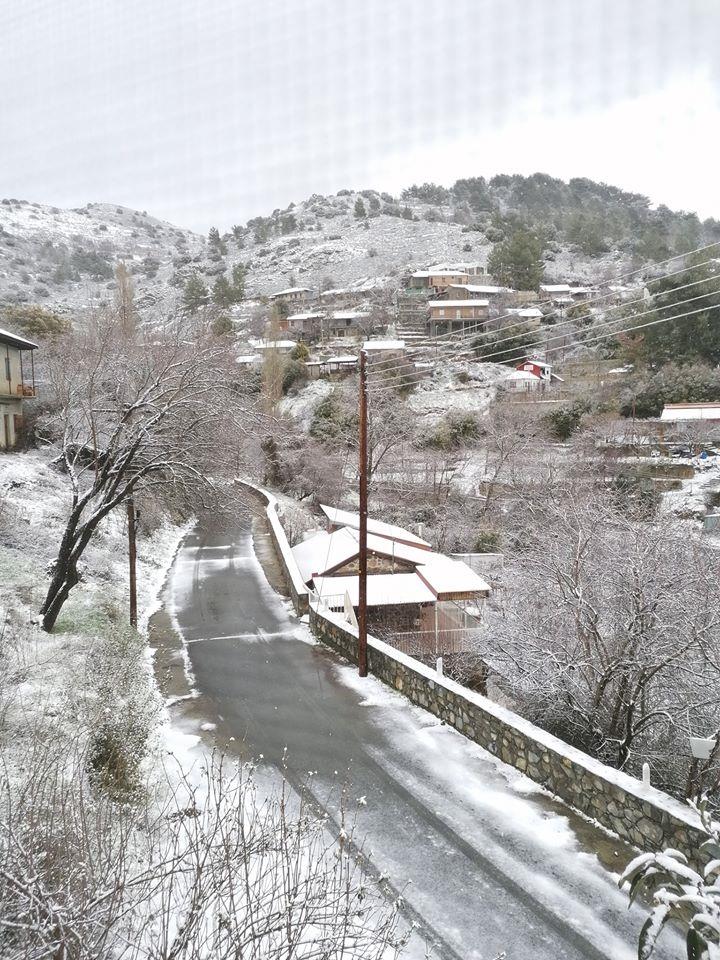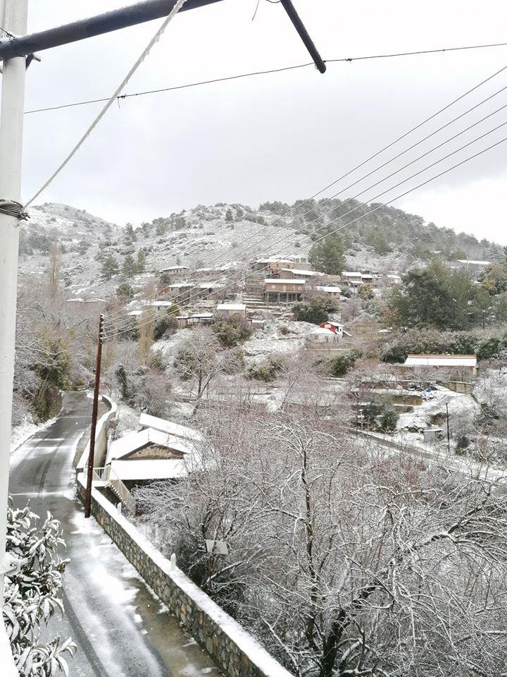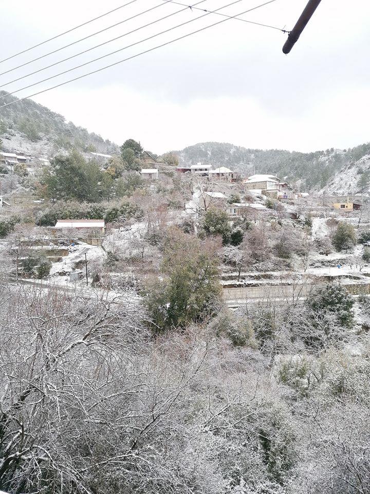 Τα χιόνια πέραν του Τροόδους, όπου είναι πολύ έντονα έφθασαν μέχρι και το Παλαιχώρι και το Κοιλάνι, ντύνοντας στα λευκά τις περιοχές.