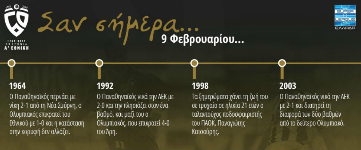 Ιστορική αναδρομή στη σημερινή ημέρα, 9 Φεβρουαρίου, κάνει η επίσημη ιστοσελίδα της Σούπερ Λίγκας.