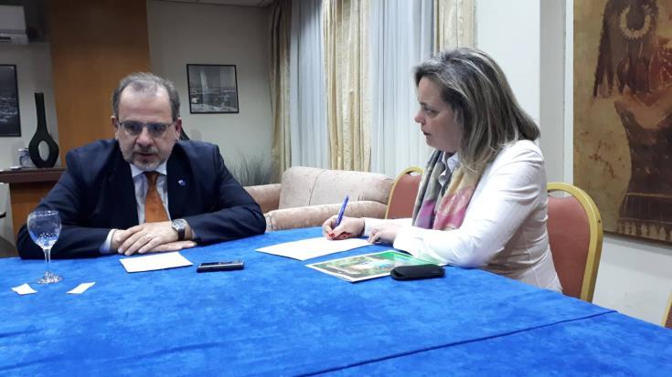 Δίνει το παράδειγμα του διαλόγου που υπάρχει ήδη μεταξύ εργοδοτικών οργανισμών και συνδικαλιστικών οργανώσεων από τις δύο κοινότητες.