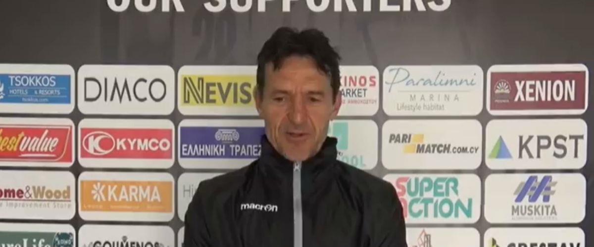 «Μετά το παιχνίδι κάναμε ότι καλύτερο μπορούσαμε, το ξέρω ότι δεν ήταν η καλύτερη μας εμφάνιση, όμως είναι δικό μου το λάθος γιατί εγώ ετοιμάζω την ομάδα. Σίγουρα ήταν ίσως και λίγο η πίεση ότι για 1η φορά μετά από αρκετό καιρό θα παίρναμε 9 βαθμούς σε τρία παιχνίδια. Η Πάφος ήταν καλά οργανωμένη ομάδα και δεν μας έδωσαν τους χώρους που ψάχναμε και σίγουρα δεν ήταν ωραίο παιχνίδι να δεις τεχνικά. Ήταν αγώνα που όποιος σκόραρε θα κέρδιζε, ατυχία για εμάς που μετά που σκοράραμε δεχθήκαμε πολύ γρήγορα την ισοφάριση και δεν μπορέσαμε να κάνουμε ευκαιρίες και να πετύχουμε το δεύτερο γκολ. Όπως είπα κάναμε ότι καλύτερο μπορούσαμε, αλλά δεν πετύχαμε», ανέφερε ο κόουτς των βυσσινί για το παιχνίδι με την Πάφο.