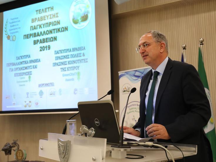 Συγχαίροντας τις επιχειρήσεις και τους οργανισμούς που βραβεύτηκαν είπε ότι οι περιβαλλοντικά φιλικές πρακτικές που υιοθετούν, αποβαίνουν ωφέλιμες για την ευρύτερη κοινωνία, ενώ παράλληλα δημιουργούν υγιέστερη επιχειρηματική κουλτούρα.