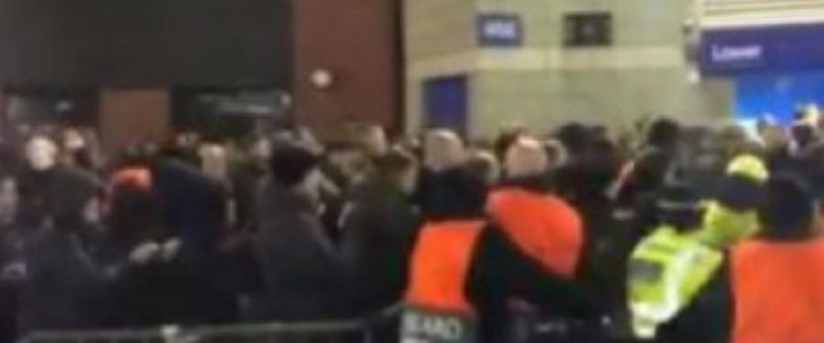 Στο επίκεντρο βρέθηκαν οπαδοί των φιλοξενούμενων, οι οποίοι πέρασαν πάνω από τα κιγλιδώματα και επιχείρησαν έφοδο χωρίς εισιτήριο. Η απάντηση της αστυνομίας ήταν άμεση, προβαίνοντας σε συλλήψεις κι όλα αυτά λίγα λεπτά πριν από την πρώτη σέντρα για το ματς των «16» του Champions League.