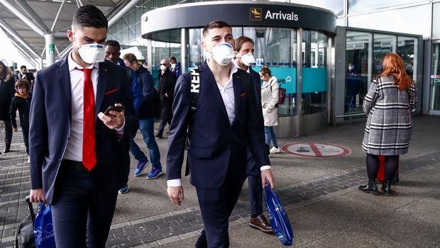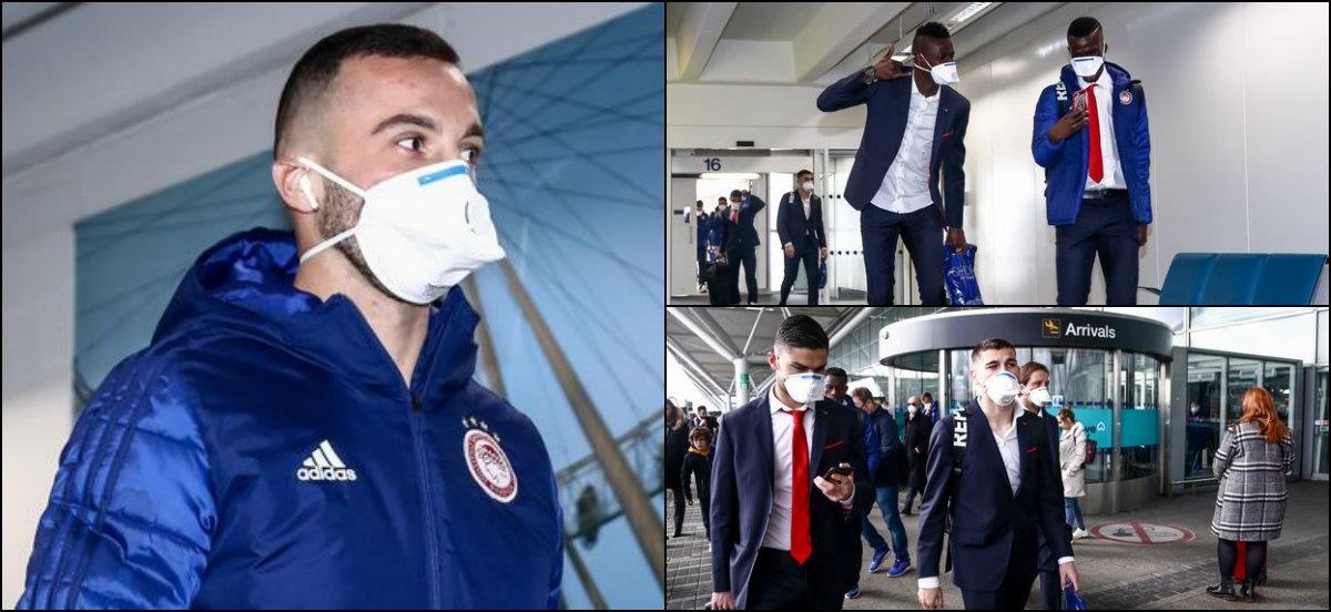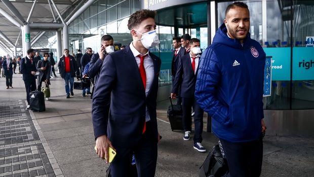 Η αποστολή του Ολυμπιακού έφτασε στο Λονδίνο για την αναμέτρηση της Πέμπτης (26/2) με την Άρσεναλ, στο πλαίσιο των 32 του Europa League. Κατά την άφιξή της στο αεροδρόμιο Στάνστεντ, στα μέλη των "ερυθρόλευκων" μοιράστηκαν ειδικές μάσκες, με στόχο την πρόληψη υπό τον φόβο των κρουσμάτων κορονοϊού.