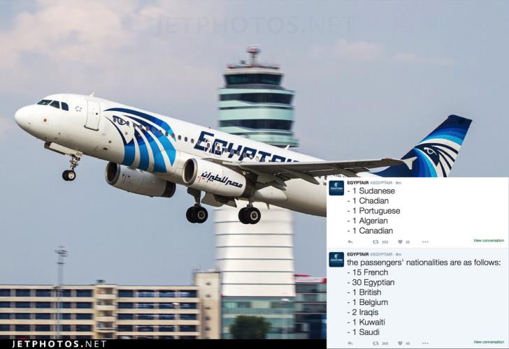 Σύμφωνα με νεώτερη ανακοίνωση της Egyptair οι επιβάτες του αεροσκάφους A320 που χάθηκε το πρωί από τα ραντάρ καθώς κατευθυνόταν από το Παρίσι στο Κάιρο ήταν 56 και 10μελές πλήρωμα.