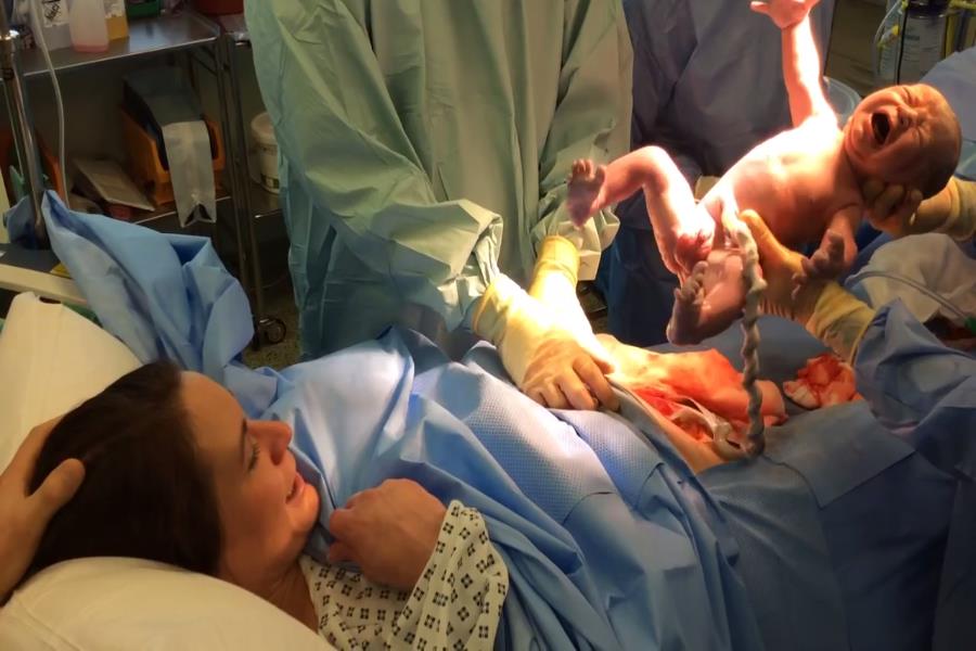 Η Σάρα Σάντερς έφερε στον κόσμο το γιο της με «φυσιολογική καισαρική» (natural caesarean), μια μέθοδο που συνδυάζει το φυσιολογικό τοκετό με την καισαρική τομή.