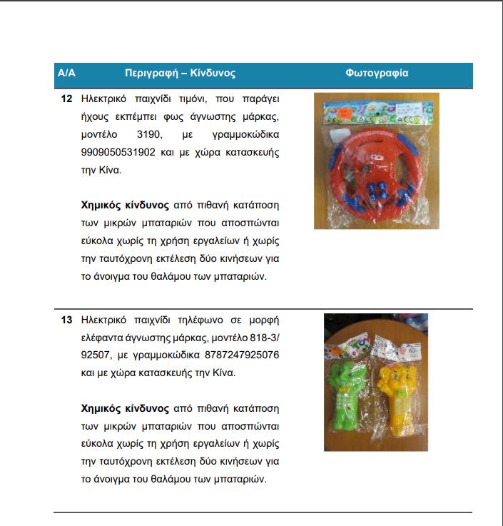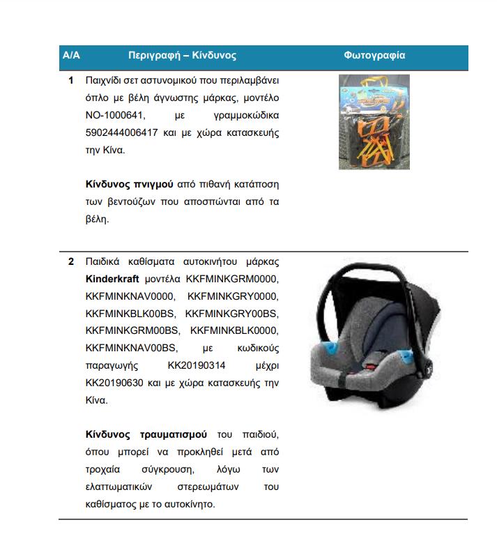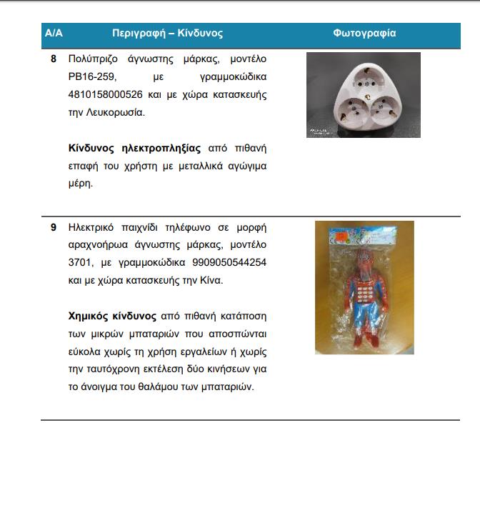 Η Υπηρεσία Προστασίας Καταναλωτή (ΥΠΚ) του Υπουργείου Ενέργειας, Εμπορίου και Βιομηχανίας, ως αρμόδια αρχή στην Κύπρο για τη λειτουργία και διαχείριση του Ευρωπαϊκού Συστήματος Ταχείας Ανταλλαγής Πληροφοριών για Επικίνδυνα Προϊόντα που δεν είναι τρόφιμα, πληροφορεί τους καταναλωτές ότι την εβδομάδα που αρχίζει στις 02/03/2020 (GRAS-RAPEX – Report 10) έχουν κοινοποιηθεί στο Σύστημα 38 προϊόντα που παρουσιάζουν κίνδυνο για την υγεία και την ασφάλειά τους. Τα προϊόντα αυτά εντοπίστηκαν στις αγορές διαφόρων κρατών μελών της Ευρωπαϊκής Ένωσης και στη συνέχεια κοινοποιήθηκαν στο Σύστημα GRAS-RAPEX.