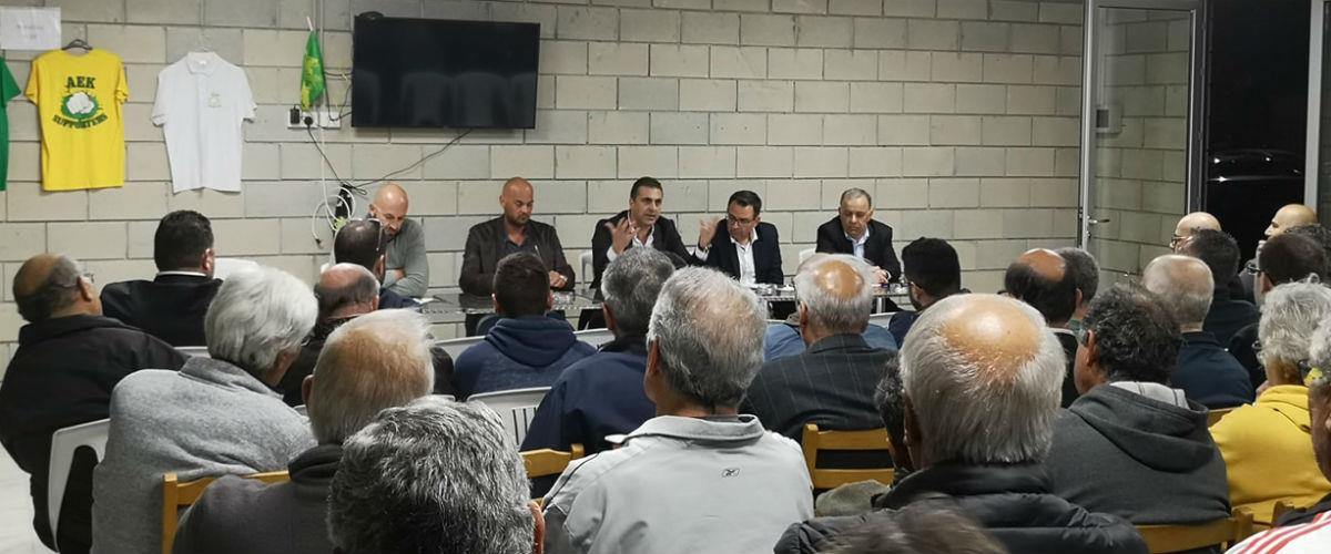Ανοικτή συνάντηση πραγματοποίησε σήμερα (10/3) η διοίκηση της ΑΕΚ με τον κόσμο, ούτως ώστε οι δύο πλευρές να συνομιλήσουν και να έρθουν πιο κοντά, μετά και τις τελευταίες εξελίξεις στην ομάδα της Λάρνακας.