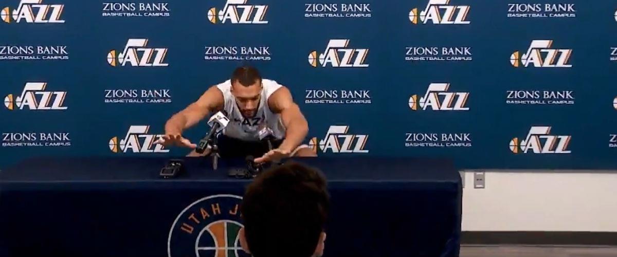 Rudy Gobert thought it was funny to touch every single mic and recorder in the media room.