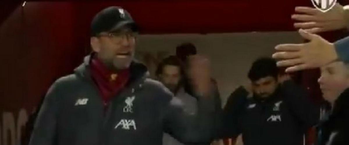Ωστόσο, η ανευθυνότητα κάποιων φιλάθλων των "κόκκινων" πριν από την έναρξη του αγώνα προκάλεσε την αντίδραση του Γιούργκεν Κλοπ. Κατά την έξοδό του από τη φυσούνα, μερικοί φίλοι της Λίβερπουλ έτειναν το χέρι τους για χειραψία με τον Γερμανό τεχνικό, ο οποίος τους "κατσάδιασε", φωνάζοντάς: "Πάρτε τα χέρια σας μακριά, ηλίθιοι".