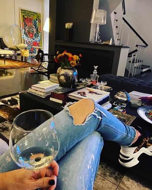 Πολύ εντυπωσιακό και το σπίτι της Μαρίας Μπακοδήμου η οποία είναι σε καραντίνα εδώ και πολλές μέρες. Απολαμβάνει όμως τον χρόνο της στο πολύ προσεγμένα διακοσμημένο σπίτι της όπου επικρατούν τα σκούρου χρώματος έπιπλα, το βελούδο αλλά και μοναδικά κομμάτια όπως μία υπέροχη πολυθρόνα από μπλεξιγκλάς.