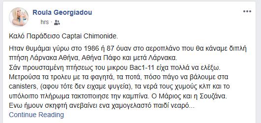 Ανάμεσα τους και η Ρούλα Γεωργιάδου που γνώρισε τον καπετάνιο στην πρώτη του πτήση, όντας ίδια αεροσυνοδός στην παλιά, θρυλική Cyprus Airways.
