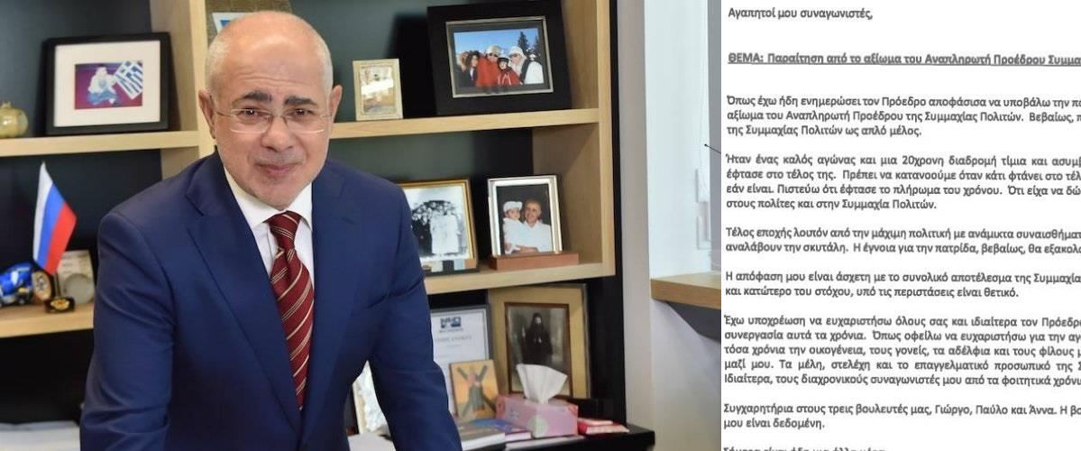 Ιδού η επιστολή παραίτησης Στέλιου Αμερικάνου από την Συμμαχία Πολιτών