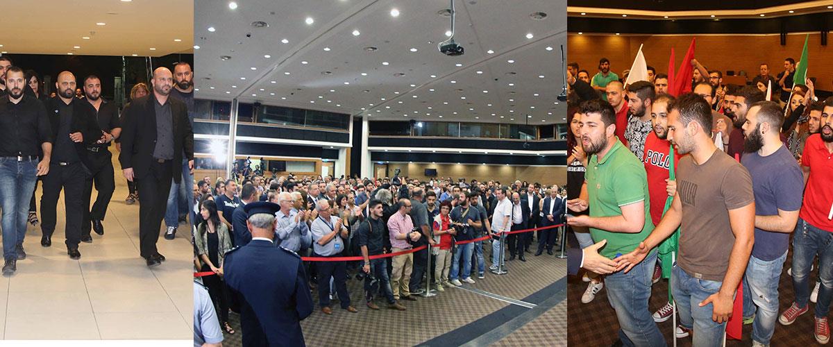 Με σημαίες και λάβαρα βρέθηκαν στο Συνεδριακό υποστηρικτές του ΑΚΕΛ(σ.σ. μέλη της νεολαίας του κόμματος ΕΔΟΝ), ενώ οργανωμένα το παρών τους έδωσαν στελέχη και υποστηρικτές του ΕΛΑΜ. Αξίζει πάντως να σημειωθεί πως το κλίμα ήταν καθ’ όλα ήρεμο σε όλη τη διάρκεια της βραδιάς και πως παρά την ταυτόχρονη παρουσία ψηφοφόρων όλων των κομμάτων στον ίδιο χώρο, δεν παρατηρήθηκε οποιαδήποτε ένταση ή παρατράγουδο. Και αν ένα αίσθημα κυριάρχησε όταν τα μέλη της ΕΔΟΝ βρέθηκαν περίπου σε απόσταση αναπνοής με αυτά του ΕΛΑΜ, μάλλον το αίσθημα αυτό ήταν αμηχανία για ένα συναπάντημα δύο εντελώς διαφορετικών κόσμων που έπρεπε να συνυπάρξουν έστω και για λίγο στον ίδιο χώρο.