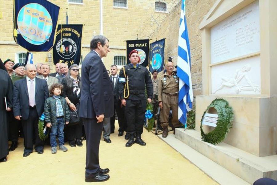 Ο Πρόεδρος της Δημοκρατίας Νίκος Αναστασιάδης και ο Πρόεδρος της Βουλής Δημήτρης Συλλούρης κατέθεσαν σήμερα στεφάνι στα Φυλακισμένα Μνήματα, επέτειο της έναρξης του απελευθερωτικού αγώνα της ΕΟΚΑ.