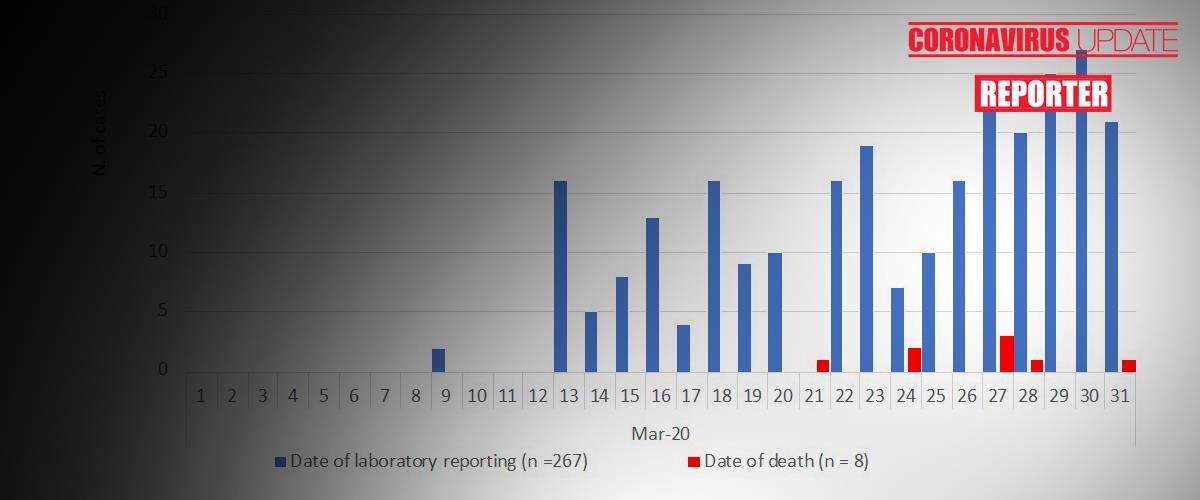 Στην έρευνα δεν περιλαμβάνονται τα 58 χθεσινά κρούσματα. Μέχρι την 31η Μαρτίου, είχαν αναφερθεί 267 εργαστηριακά επιβεβαιωμένες περιπτώσεις COVID-19 (συμπεριλαμβανομένων και τεσσάρων περιστατικών στις βρετανικές βάσεις). O χρόνος που μεσολαβεί από την έναρξη των συμπτωμάτων, μέχρι την ημερομηνία της δειγματοληψίας ήταν 4 μέρες (Ενδοτεταρτημοριακό εύρος: 2-7 ημέρες).