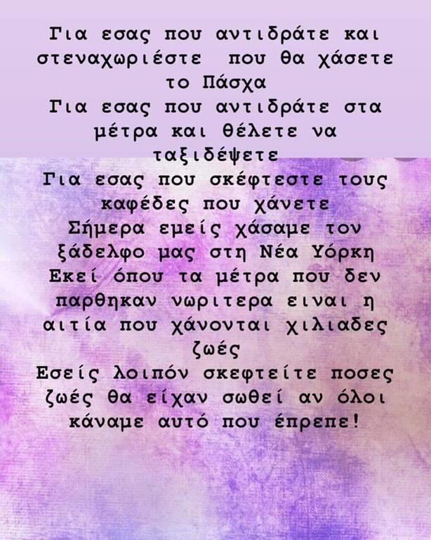 Σήμερα εμείς χάσαμε τον ξάδελφό μας στη Νέα Υόρκη. Εκεί όπου τα μέτρα που δεν πάρθηκαν νωρίτερα είναι η αιτία που χάνονται χιλιάδες ζωές.