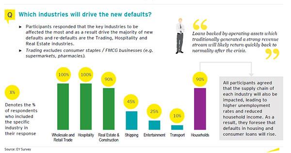Σύμφωνα με τα αποτελέσματα της έρευνας το ύψος των μη εξυπηρετούμενων χορηγήσεων αναμένεται να καταγράψουν μικρή άνοδο το 2020, ενώ μεγαλύτερη άνοδο κατά το 2021. Τα περισσότερα μη εξυπηρετούμενα δάνεια αναμένεται να προέλθουν από τους τομείς του χονδρικού και λιανικού εμπορίου, τον τουρισμό και τον τομέα ανάπτυξης γης. Εκτιμάται επίσης ότι επίδραση της εφοδιαστικής αλυσίδας αναμένεται να αυξήσει την ανεργία και να μειώσει το εισόδημα των νοικοκυριών, προκαλώντας νέα μη εξυπηρετούμενα δάνεια από μεμονωμένους δανειολήπτες.