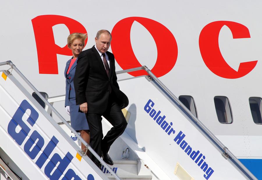 Ο Βλαντιμίρ Πούτιν έχει ήδη προσγειωθεί στην Ελλάδα. Τον Ρώσο Πρόεδρο που πραγματοποιεί διήμερη επίσκεψη στη χώρα υποδέχθηκε στο αεροδρόμιο «Ελευθέριος Βενιζέλος», ο Υπουργός Εθνικής Άμυνας Πάνος Καμμένος και ο αρχηγός ΓΕΕΘΑ, ενώ άγημα των ενόπλων δυνάμεων απέδωσε τιμές.. Τον Ρώσο Πρόεδρο συνοδεύουν υπουργοί και δεκάδες επιχειρηματίες. Έφθασε με περίπου 1 ώρα καθυστέρηση.