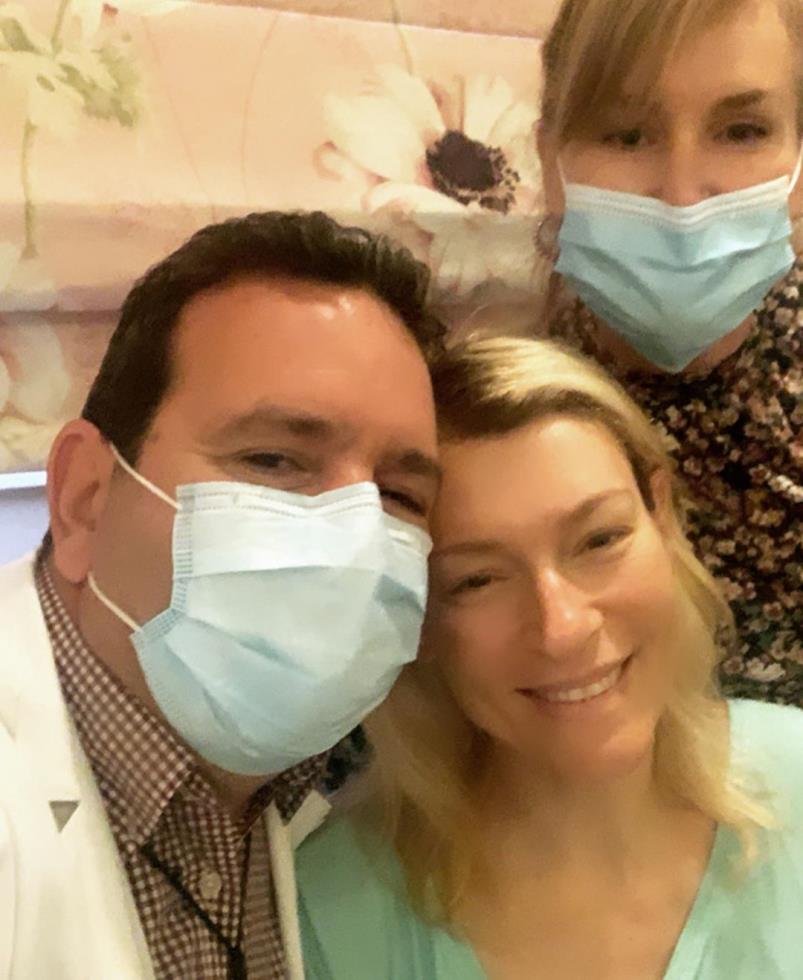 Συγκεκριμένα, δημοσίευσε τρεις φωτογραφίες που είχε βγάλει μέσα στο δωμάτιο του νοσοκομείου με τον σύζυγό της, Μιχάλη Χατζαντωνά, την μητέρα της, αλλά και τον γυναικολόγο της, θέλοντας να τον ευχαριστήσει δημόσια.