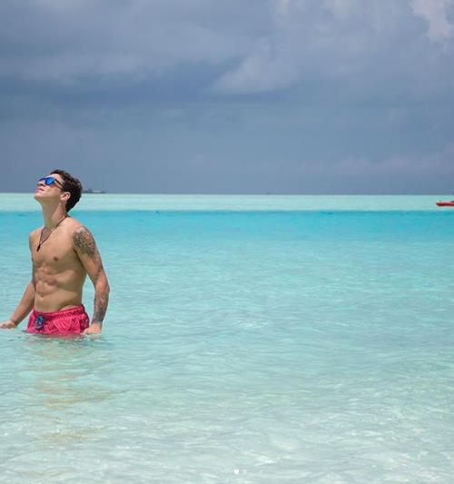 «Eίμαι χαρούμενος! Είναι η καλύτερη στιγμή της ζωής μου, είσαι ήδη στην καρδιά μου και σύντομα στην αγκαλιά μου. Σε ευχαριστώ που μου άλλαξες την ζωή για πάντα και για τη δημιουργία αυτής της οικογένειας. Είμαστε ήδη τέσσερις (σ.σ εννοεί το σκυλάκι του). Σε αγαπώ»