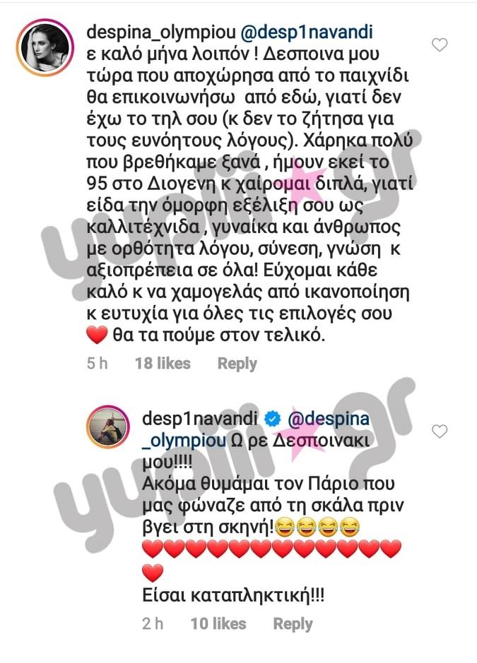 Τι έγραφε στο μήνυμά της η Δέσποινα Ολυμπίου προς τη Δέσποινα Βανδή;