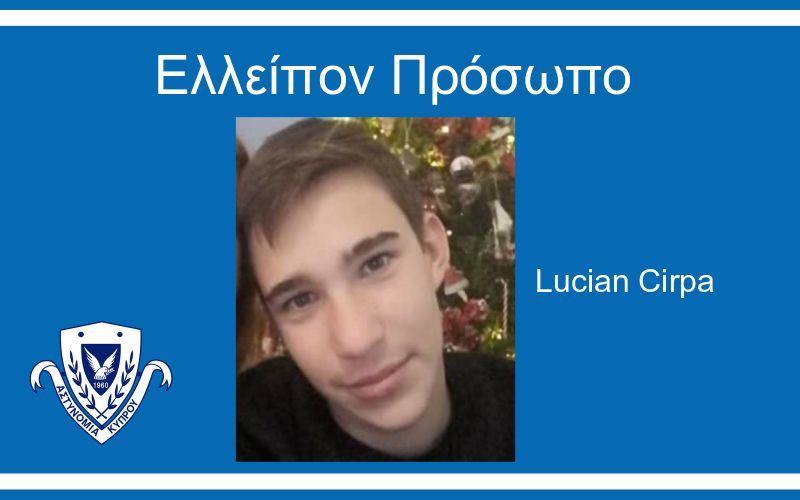 Καταγγέλθηκε στην Αστυνομία, ότι ελλείπει από το πρωί της 6ης Ιουνίου, 2020, από την εξοχική του κατοικία στον Μαζωτό, ο Lucian Cirpa, 14 ετών από τη Μολδαβία.