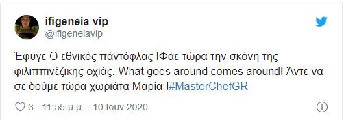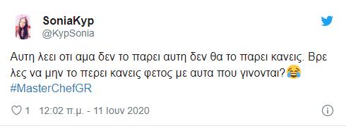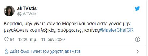 Μερικά σχόλια ήταν ιδιαίτερα εμπνευσμένα, ωστόσο, πολλά ήταν αυτά που εξέφρασαν την δυσαρέσκειά τους για την μοναδική γυναίκα που έχει μείνει στο MasterChef με όχι και τόσο κομψό τρόπο.