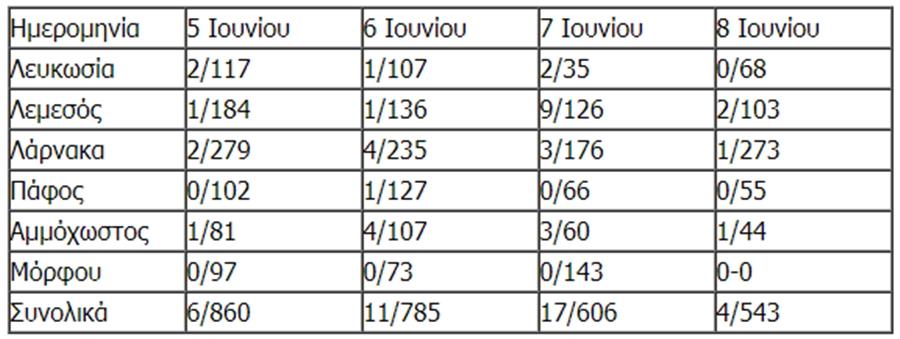 Αναλυτικά οι πίνακες καταγγελιών και ελέγχωναπό 5-8 Ιουνίου