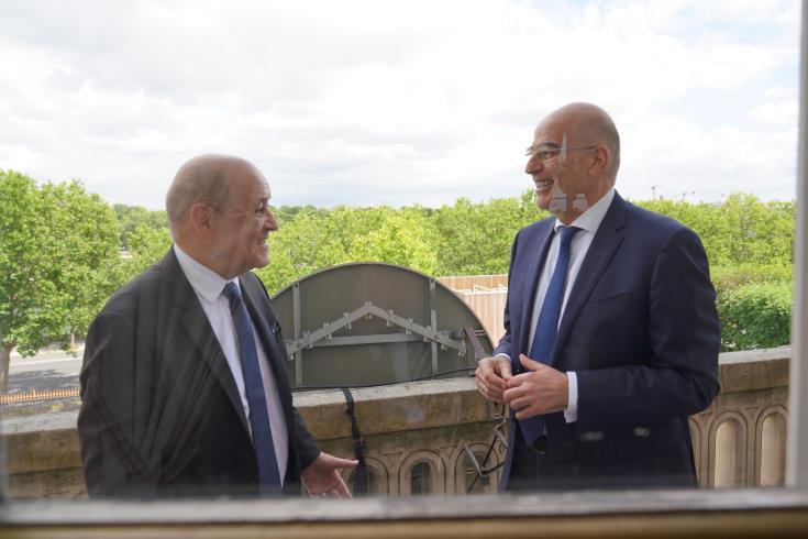 Το ζήτημα της κλιμάκωσης της τουρκικής προκλητικότητας στη Μεσόγειο συζητήθηκε εκτενώς κατά τη διάρκεια συνάντησης που είχαν τη Δευτέρα στο Παρίσι οι Υπουργοί Εξωτερικών Ελλάδας και Γαλλίας, Νίκος Δένδιας και Ζαν- Ιβ Λε Ντριάν.
