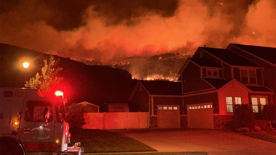Δεκάδες κάτοικοι αναγκάστηκαν να εγκαταλείψουν τα σπίτια τους, έπειτα από μεγάλη πυρκαγιά που ξέσπασε κοντά σε κατοικημένες περιοχές στη Γιούτα, τα μεσάνυχτα της Κυριακής.