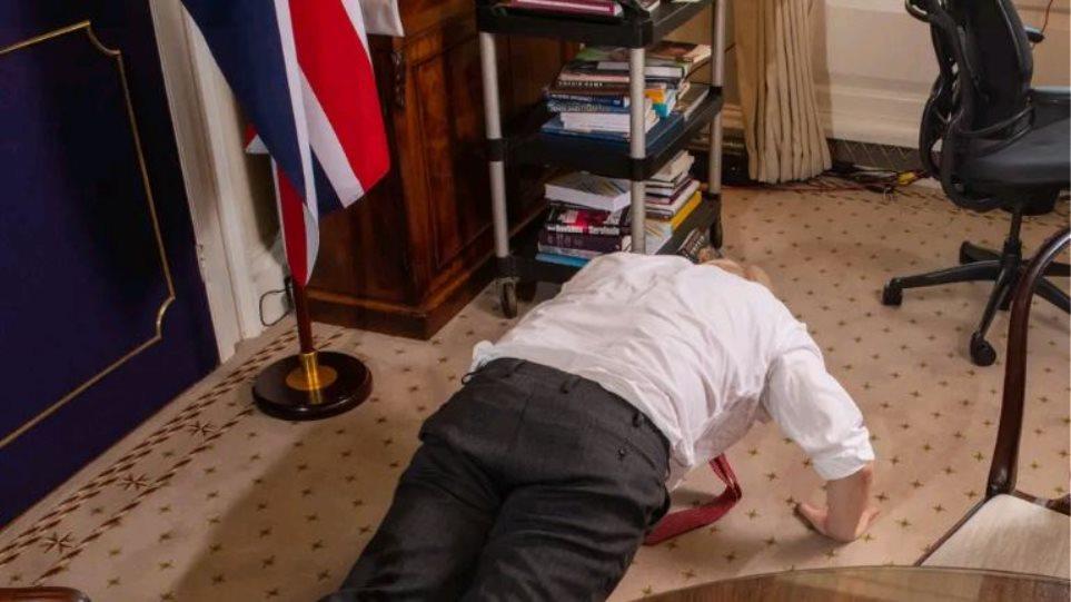 Την ίδια ώρα, στα social media η φωτογραφία του Τζόνσον να αθλείται με γκρίζο παντελόνι, λευκό πουκάμισο και κόκκινη γραβάτα στο χαλί της Ντάουνινγκ Στριτ σχολιάστηκε με ειρωνεία από πολλούς χρήστες: