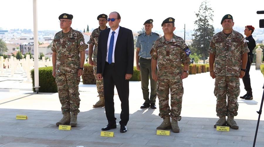 Επίσκεψη στο στρατιωτικό κοιμητήριο στον Τύμβο της Μακεδονίτισσας και στα Φυλακισμένα Μνήματα πραγματοποίησε σήμερα ο Υπουργός Άμυνας Χαράλαμπος Πετρίδης με ευκαιρία της ανάληψης των καθηκόντων του.
