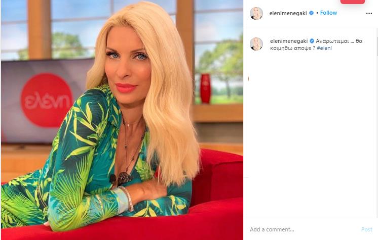 «Αναρωτιέμαι… θα κοιμηθώ απόψε;», έγραψε η Ελένη Μενεγάκη στη λεζάντα.