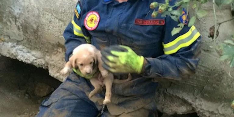 Οι πυροσβέστες ειδοποιήθηκαν από τη Ζωόφιλη Δράση ότι ένα κουτάβι είχε πέσει σε βόθρο κάτω από ένα παλιό σπίτι και έκλαιγε απελπισμένα επί δύο ημέρες.