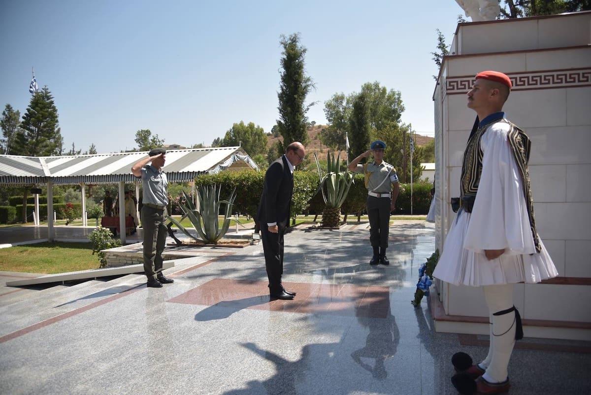 Σύμφωνα με ανακοίνωση του Υπουργείου Άμυνας ο Υπουργός κατέθεσε επίσης στεφάνι στο μνημείο πεσόντων, κατά την τουρκική εισβολή στην Κύπρο το 1974, και αγνοουμένων Ελλήνων αγωνιστών στην Κύπρο.